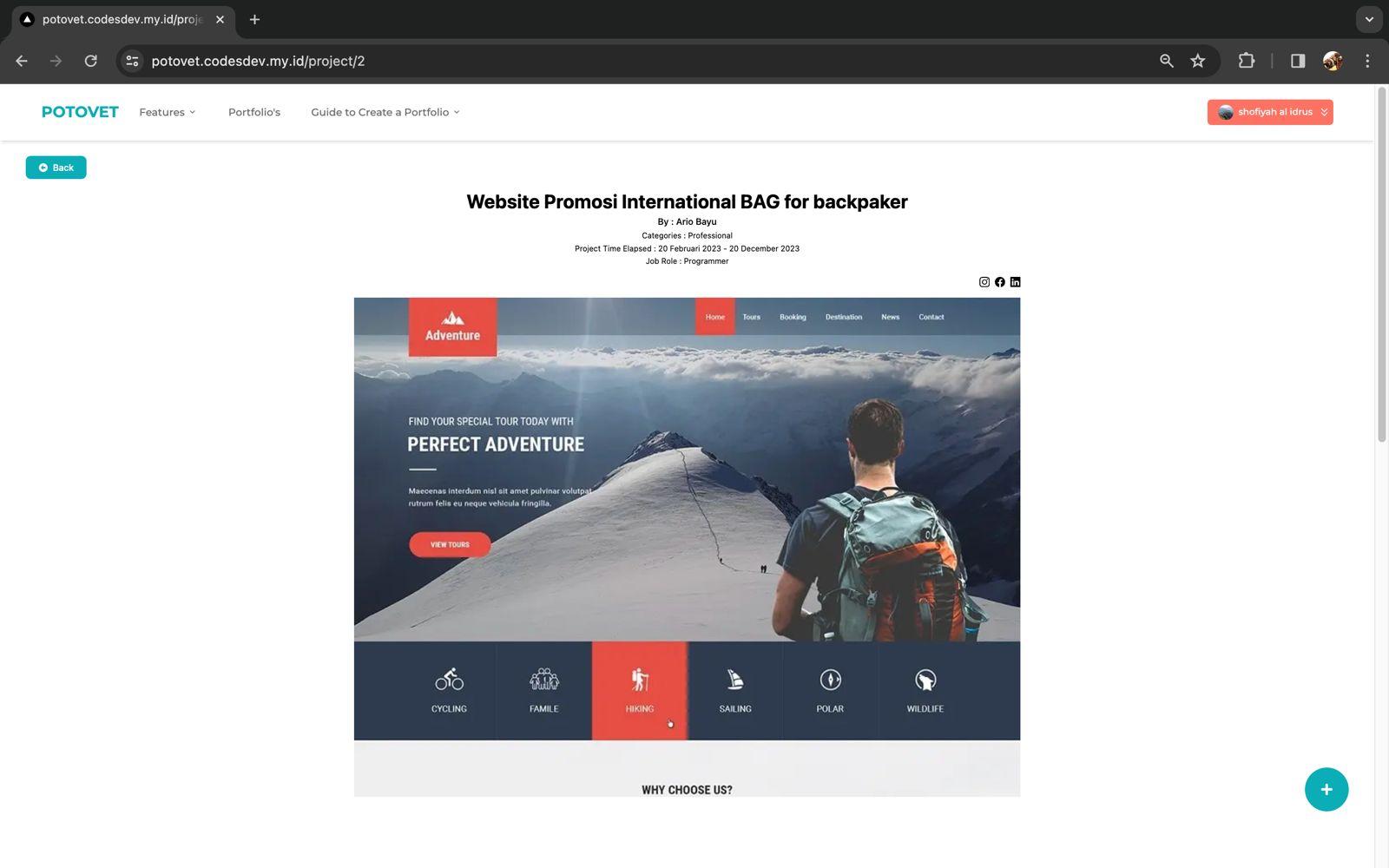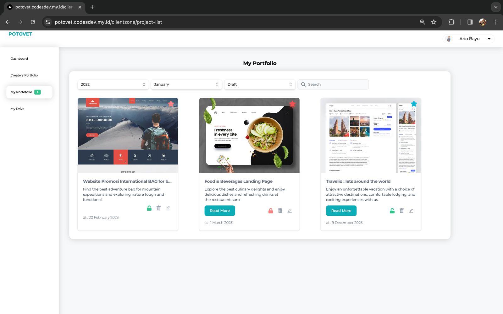 yang dapat memudahkan kalian untuk memahami pengisian informasi. - Portofolio telah berhasil dibuat jika kalian menekan button “submit” dan secara otomatis POTOVET akan menampilkan portfolio yang telah dibuat pada menu “ My Portfolio”.